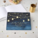 Modern and elegant navy blue wedding guestbook with gold glitter and string/fairy lights. Customised with the names of the bride and groom and their wedding date.