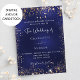 A navy blue background decorated with faux gold glitter, sparkles. The blue colour is uneven. Personalise and your names and details.