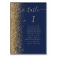 The left-hand edge of this elegant modern wedding table number card features a gold faux glitter border. The word "table" appears in gold-coloured whimsical handwriting script on a navy blue background. Add the names of your guests who are assigned to each table.