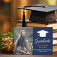 This elegant navy blue senior photo graduate announcement features chic white script next to your high school or college graduate photograph for the senior class of 2026. Customize with your name in gold script under the lovely calligraphy and send to friends and family.