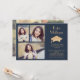 Navy blue and gold graduation cap Class of 2024 high school graduation photo announcements. Personalised with 4 photos and information about your graduate.