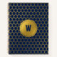 Navy Blue Gold Hexagon Pattern Monogrammed Initial Notebook