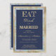 Navy blue gold holographic Eat Drink Be Married Invitation