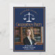 This chic navy blue and gold custom law school graduation party invitation features classy typography for a class of 2025 graduate above your student photo. Customise with your graduating year under the white scales of justice and photograph for a great personalised lawyer or attorney invite.