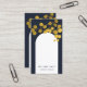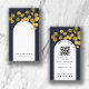 Navy Blue Gold Leaves Modern Arch QR Code Business Card