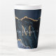 Navy Blue Gold Marble Monogram Name Latte Mug