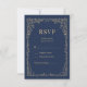 Invite guests to respond with this minimalist navy blue and gold wedding RSVP card. The clean layout pairs deep navy tones with refined gold accents for a polished and modern look. Designed for clear readability and a smooth, print ready finish that complements any elegant wedding theme.