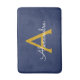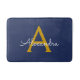 Navy Blue Gold Modern Script Girly Monogram Name Bath Mat