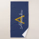 Navy Blue Gold Modern Script Girly Monogram Name Bath Towel