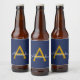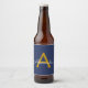 Navy Blue Gold Modern Script Girly Monogram Name Beer Bottle Label