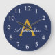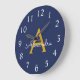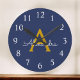 Navy Blue Gold Modern Script Girly Monogram Name Large Clock