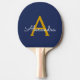 Navy Blue Gold Modern Script Girly Monogram Name Ping Pong Paddle