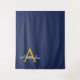 Navy Blue and Gold Simple Script Monogram Name and Initial Tapestry. This makes the perfect sweet 16 birthday, wedding, bridal shower, anniversary, baby shower or bachelorette party gift for someone that loves glam luxury and chic styles.