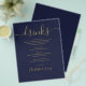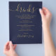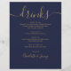 Navy Blue Gold Modern Script Wedding Drinks Menu