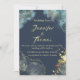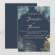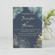 This luxurious wedding invitation features an elegant navy blue background accented with subtle gold and blue watercolor accents. The elegant design is accented with luxurious artistic gold flecks and accents, creating a sophisticated and glamourous look perfect for a sophisticated and elegant wedding.