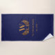 Navy blue gold monogram initial laurel wreath beach towel