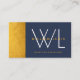 A modern monogram design with navy blue background colour and gold accents. A minimalist personalised initial QR code business card for both men and women who have a flare for style. A simple and professional way to introduce your business. Personalise your details to create your own unique business card.
