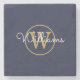 Navy Blue Gold Monogram Script Name Stone Coaster