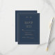 Elegant navy blue and gold wedding RSVP card featuring a classic monogram design. Created for couples who want a refined, formal look that complements luxury wedding stationery. Ideal for traditional, modern, or formal weddings. Perfect for coordinating with navy and gold wedding invitations. Editable text with a clean, print-ready layout.