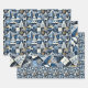 Navy Blue Gold Nordic Christmas Forest Pattern Wrapping Paper Sheet