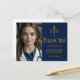 This navy blue and gold custom osteopathic medical school graduation thank you postcards for a DO or an osteopath doctor features an osteopathic medical caduceus symbol and your college name for the class of 2025. Customise with your graduating year for a great personalised university graduate thank you postcard with your photo.