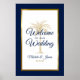 Navy Blue Gold Palm Tree Wedding Welcome Poster