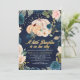Navy Blue Gold Peach Floral Pumpkin Baby Shower Invitation