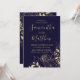 Navy Blue & Gold Peony Modern Floral Wedding Invitation