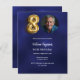 A modern, minimalist photo invitation for a 80th birthday party. A navy blue uneven coloured background. Personalise and add a photo and party details.