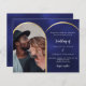 Navy blue gold photo arch wedding invitation