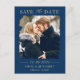 Navy Blue Gold Photo Frame Save the Date Postcard