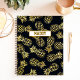 Navy Blue Gold Pineapple Pattern Monogram notebook. Beautiful elegant navy blue and gold tropical pineapple pattern design. Personalise this custom design with your name.
