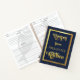 Modern, navy blue recipe notebook has a gold polka dot edge, then a gold foil stripe going around a solid navy blue background. The words Recipes and Kitchen are done in gold foil as well. Personalise it by using the "personalise this template" link.