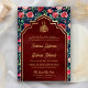 Navy Blue Gold Red Roses Floral Muslim Wedding Invitation