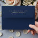 Complete your wedding stationery suite with this navy blue and gold return address envelope. Deep navy tones paired with refined gold accents create an elegant and modern look, while the clean minimalist layout ensures sharp readability for mailing. Designed for a polished, professional, and print ready finish that complements any sophisticated wedding theme.