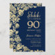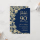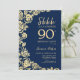 Navy Blue Gold Roses Surprise 90th Birthday Invitation