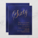 A modern, stylish invitation for a 60th birthday party. A navy blue, uneven coloured background and the word Sixty written with elegant large script letters in faux gold. Personalise and add a name and party details.