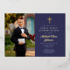Personalised Navy Blue Gold Script Boy Photo First Communion Foil Invitation.