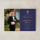 Navy Blue Gold Script Boy Photo First Communion