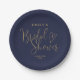 Navy Blue Gold Script Calligraphy Bridal Shower Paper Plate