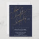 Navy Blue Gold Script Rehearsal Dinner Invite
