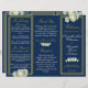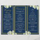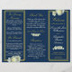 Navy Blue Gold Script Rose Trifold Wedding Program