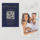 Navy Blue Gold Script Wedding RSVP QR Code Photo Enclosure Card