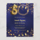 A modern, stylish photo invitation for a 50th birthday party. A navy blue background, decorated with golden stars. The blue colour is uneven. Personalise and add your photo and party details.