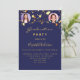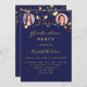 A invitation card for a 2025 (or any year) graduation party for both him and her. A navy blue background decorated with faux gold stars. Personalise and add 2 photos, a name and party details. Works best with square photos. The text Graduation and the name are written with modern hand lettered style script. Golden coloured text.