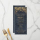 Complete your table setting with this elegant wedding menu from the Rustic Glam Wedding Collection. Designed with glowing gold string lights over a deep navy faux-denim background, this vertical menu offers a stunning blend of rustic charm and evening sophistication. The layout includes sections for breads, entrées, and sides, clearly presented for plated dinner service or buffet-style meals. Perfect for barn receptions, vineyard weddings, or formal country club celebrations, this card coordinates seamlessly with your invitations, signage, and RSVP cards. Customise with your meal options and wedding details for a polished, personalised touch your guests will appreciate.