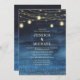 Modern, elegant, and chic navy blue wedding invitation with gold glitter and string lights and lanterns. Text, fonts, and wording are completely customisable with Zazzle's easy-to-use design tool. Contact me with your requested wording for assistance with customisation.