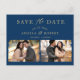 Navy Blue Gold Trendy 2 Photo Save the Date Postcard