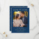 Modern Navy Blue and Gold - Brush Stroke Photo Frame Save the Date Card.
