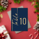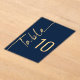Navy Blue & Gold Wedding Acrylic Table Number. Table number is in a set rotated script along the left hand side. Personalise each number and guest names and add each to your cart individually.